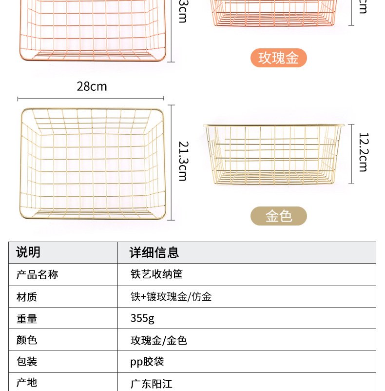 工場販売鉄芸収納バスケット収納バスケット鉄芸収納バスケット収納枠デスクトップ整理化粧品バスケット