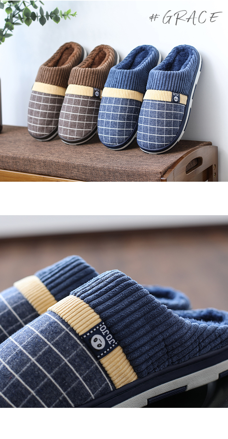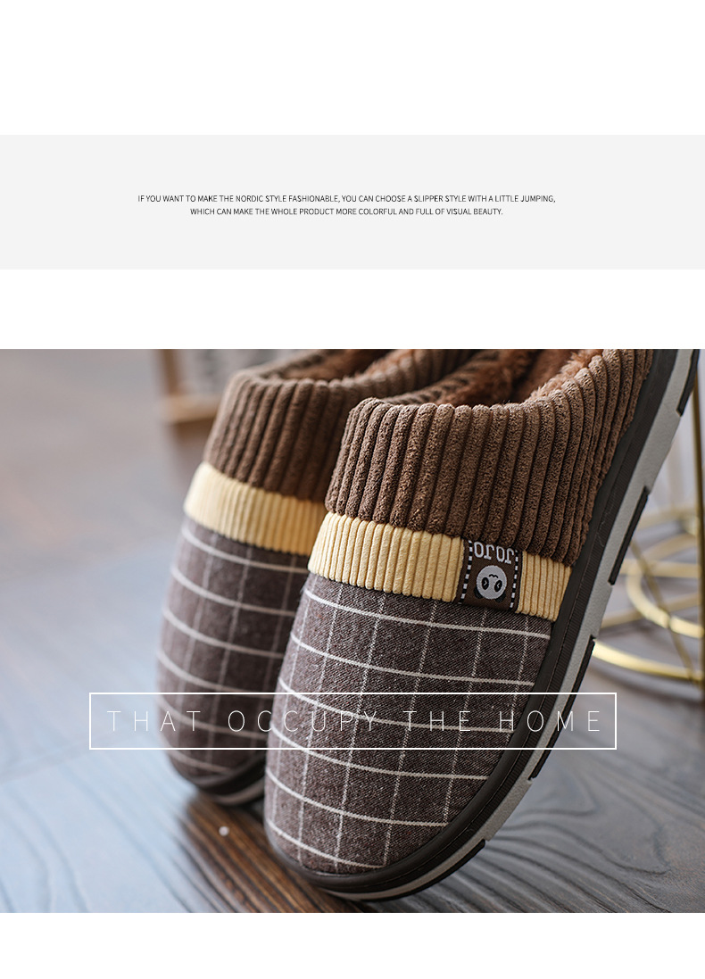綿のスリッパ男性用ホーム暖かい屋内滑り止め厚底カップルホームぬいぐるみ新しい秋と冬の綿のスリッパ女性用