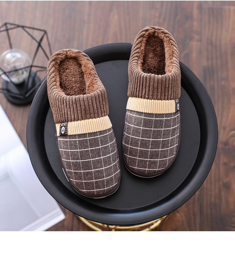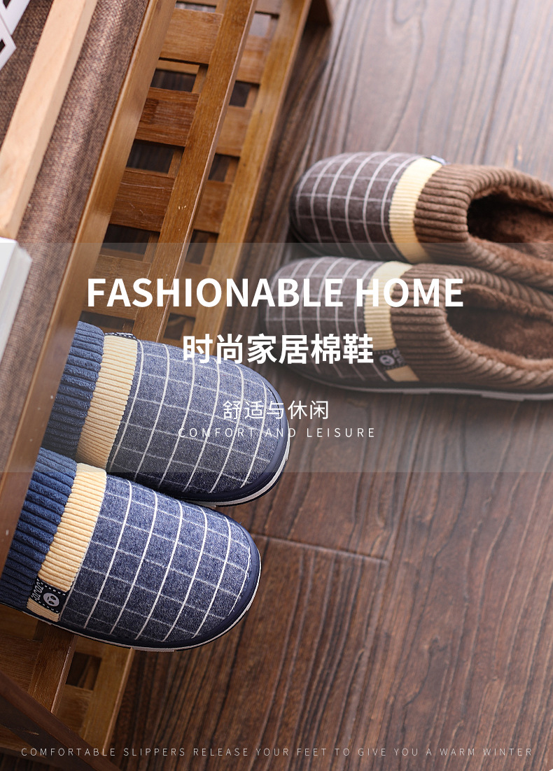 家庭用スリッパ男性家庭用秋冬室内保温厚い底綿スリッパ男性冬2020新型パケットヘッダー