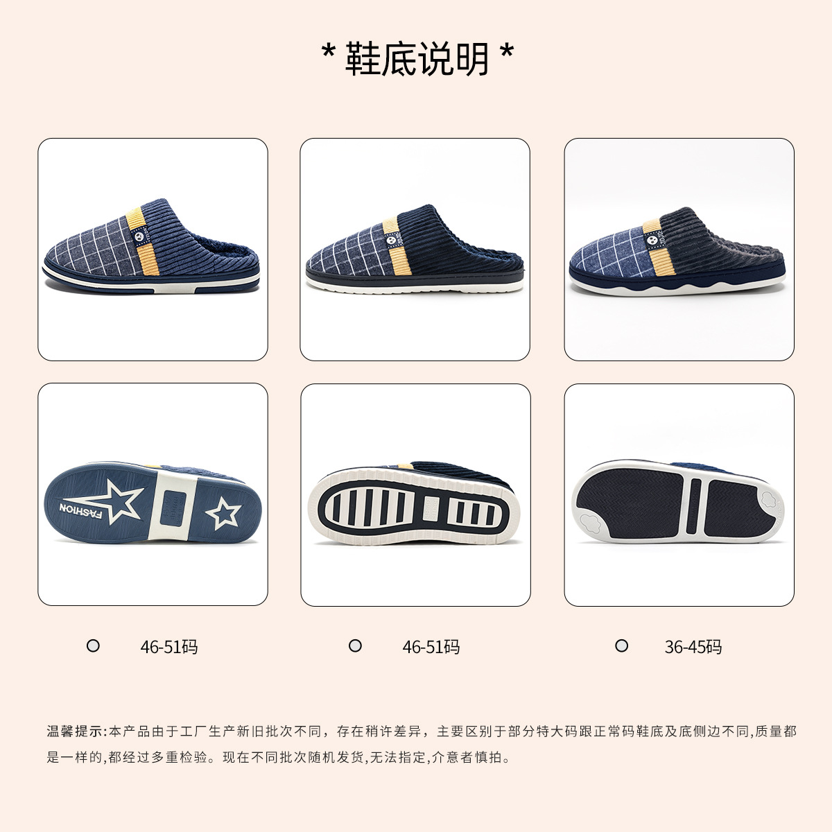 特大码40-51男士棉拖鞋冬季防滑室内保暖家用防滑家居软底拖鞋男