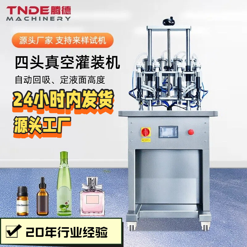 広州騰徳真空負圧香水充填機小型花露液体西林瓶四頭充填機