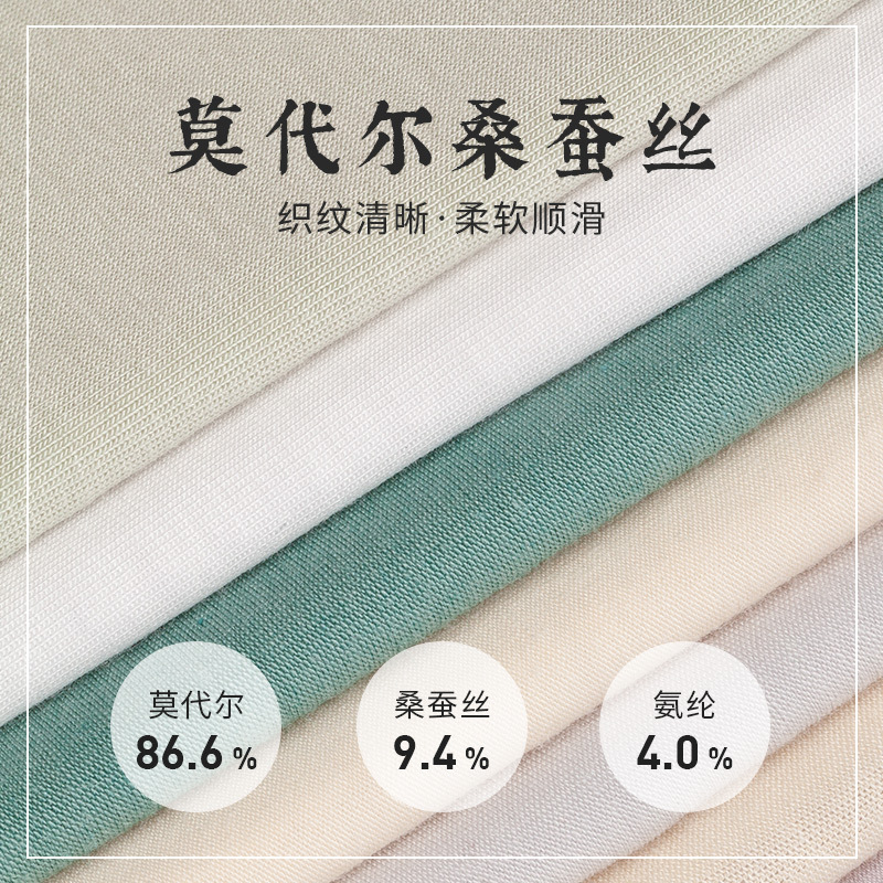 成分と内容量 85% モダール、10% マルベリーシルク、5% スパンデックス