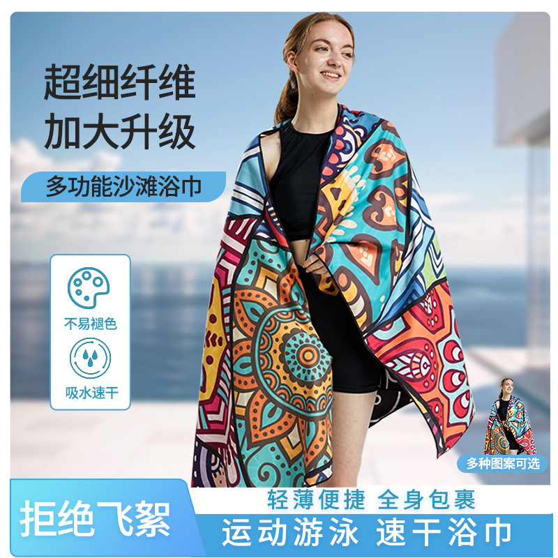ビーチタオルボヘミアンプリントバスタオルマイクロファイバー吸水速乾水泳スポーツ女性両面パイルタオル