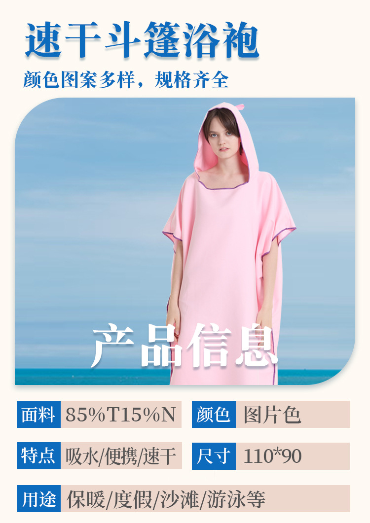 纯色速干斗篷 超细纤维吸水速干斗篷换衣斗篷披风沙滩浴袍