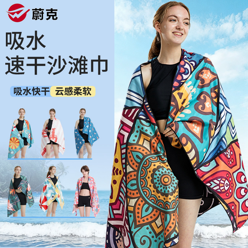 極細繊維両面ベルベットビーチバスタオル吸水速乾プリント旅行タオル水泳フィットネス女性速乾タオル