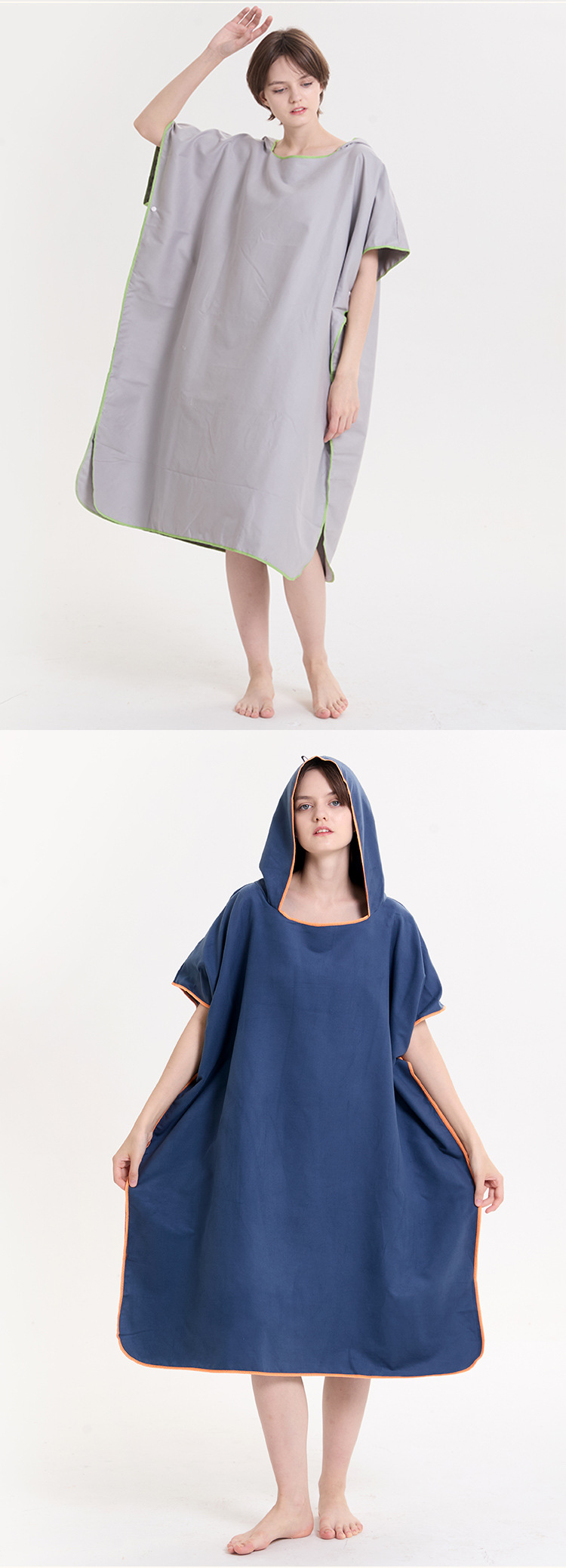 現物無地成人ビーチバスローブ極細繊維吸水速乾マントフード付き着替えビーチバスローブ