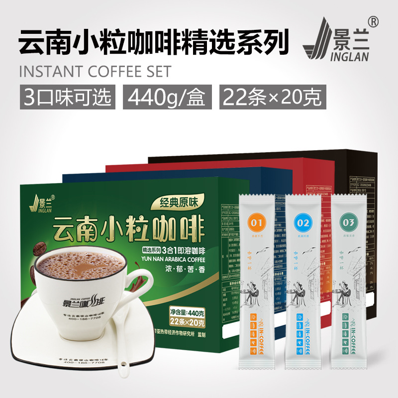 景蘭雲南小粒三合一多味インスタントコーヒー粉独立小包装商用メーカー直販卸売り