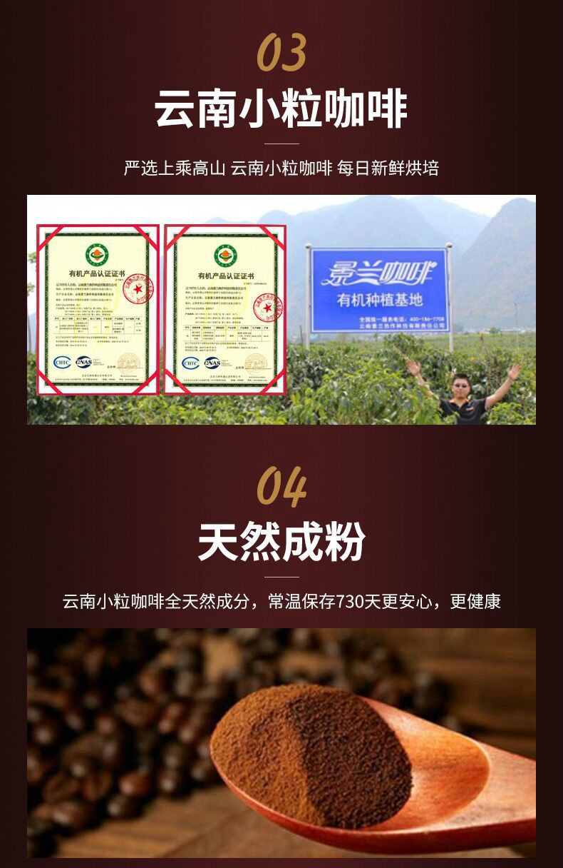 景蘭藍山黒珈溶アラビカ速溶純コーヒー雲南小粒生放送代発源工場商品