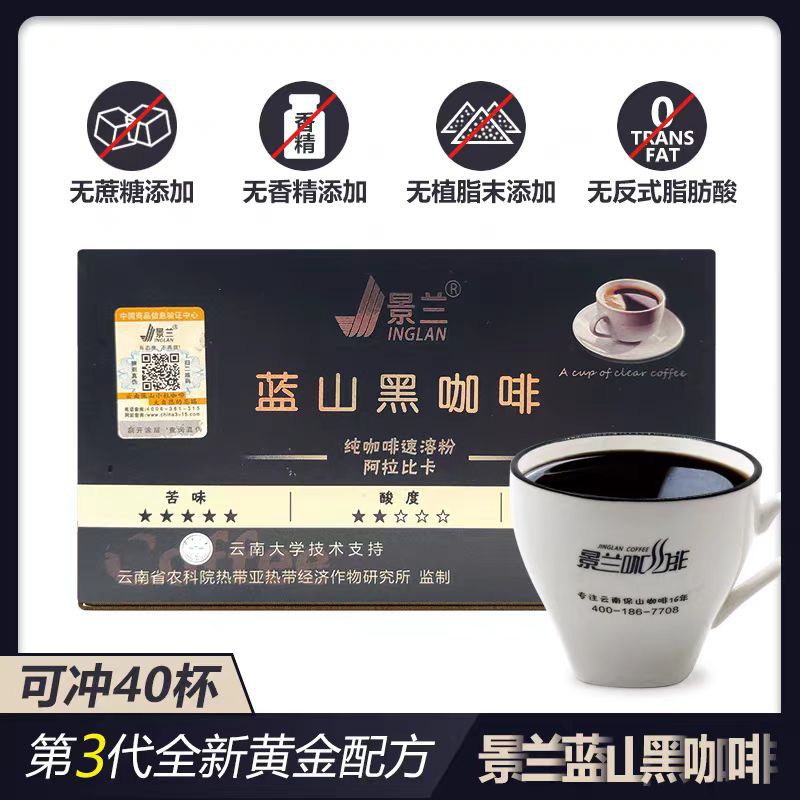 景兰蓝山黑咖啡40袋装美式纯速溶咖啡云南小粒咖啡粉正品