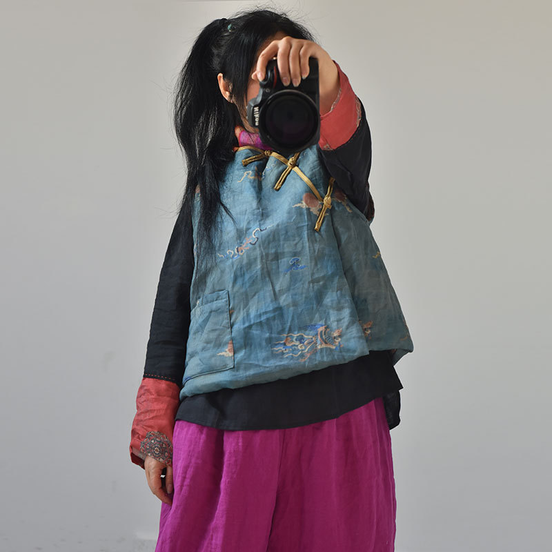 砂洗亚麻+拼布双层全棉印花面料 60克羽绒棉填充 全棉里布