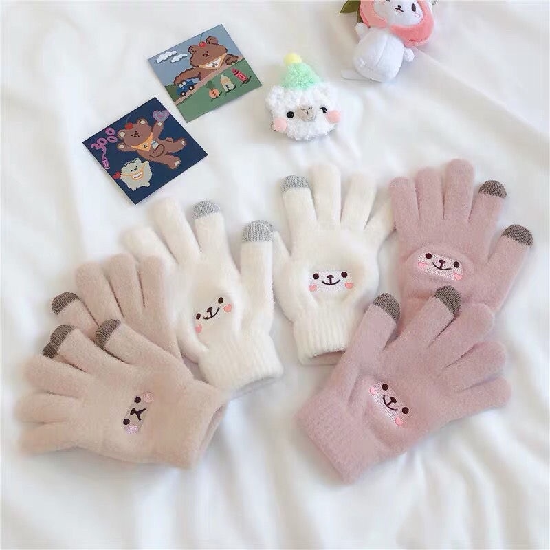 冬の防寒保温タッチパネル手袋はニットのかわいいアニメ笑顔学生ファッション冬の肌に優しい手袋に乗る