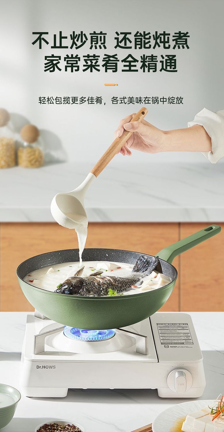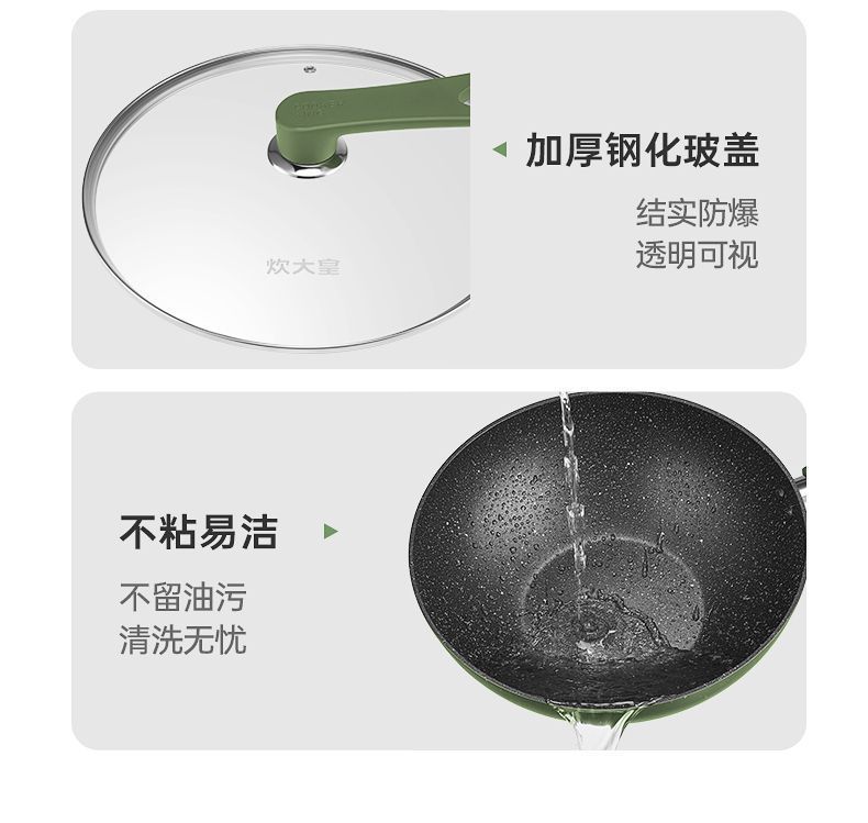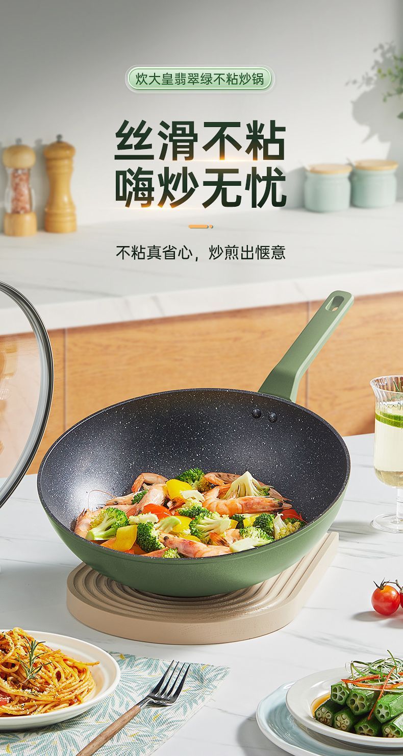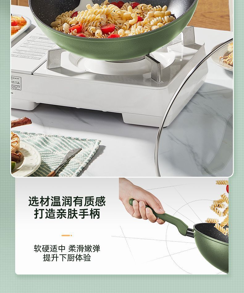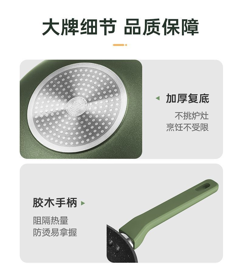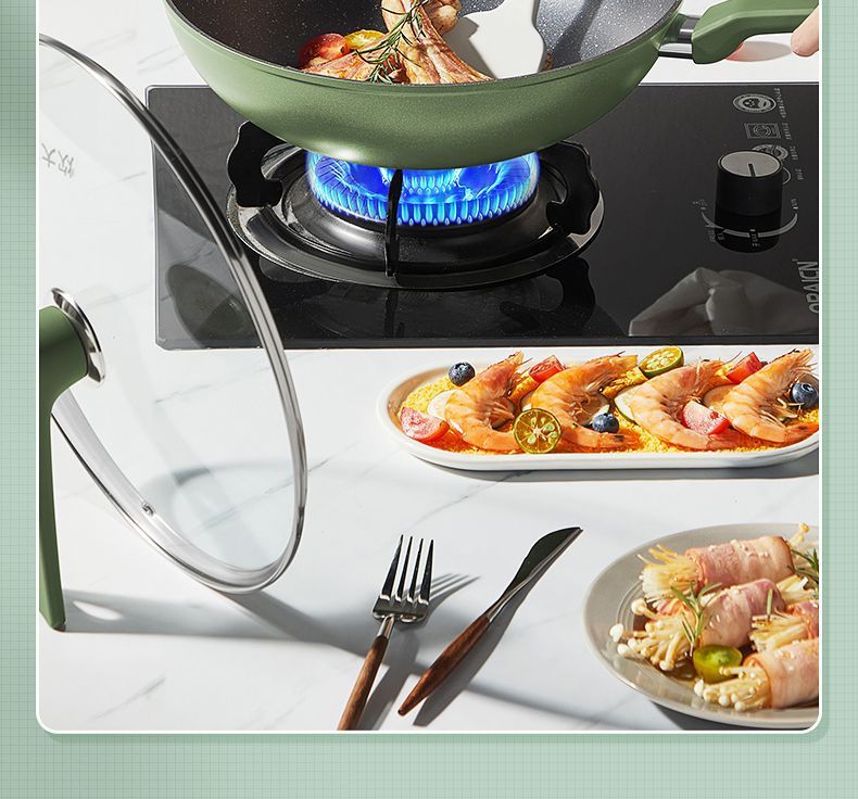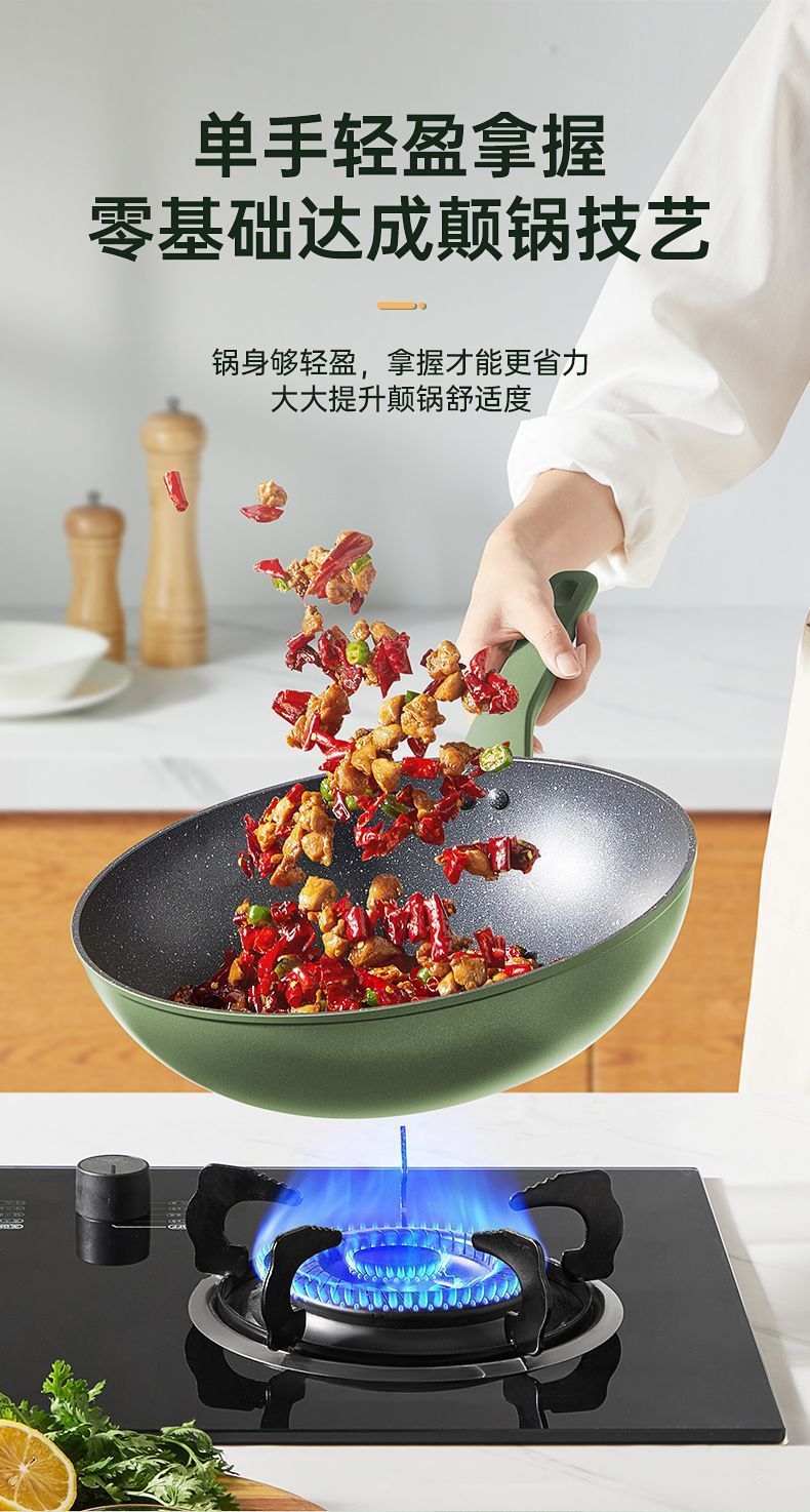 炊事大皇炒め鍋麦飯石色は鍋の家庭にくっつかない油を集めて油煙のないフライパンの翡翠緑の軽い炒め鍋です。