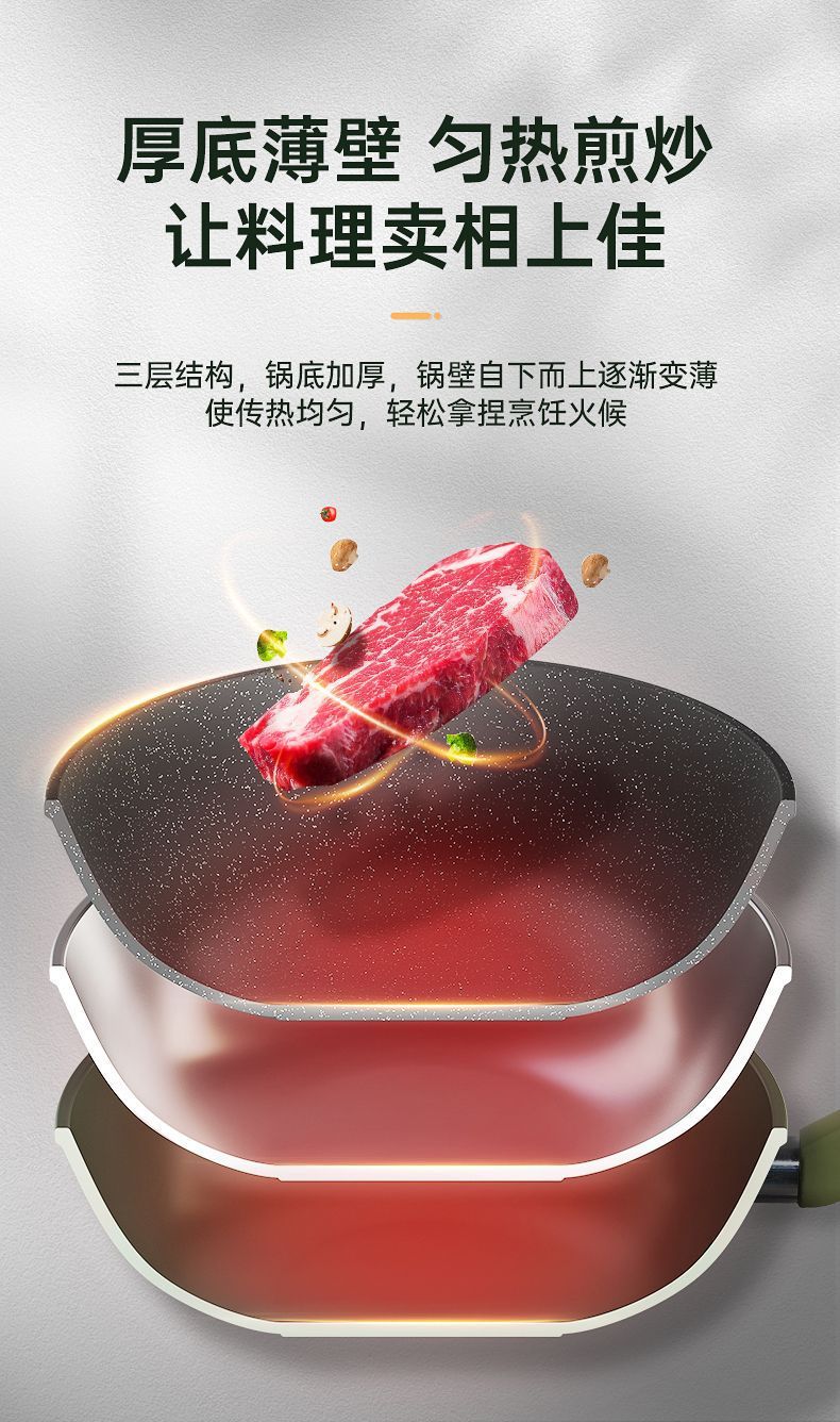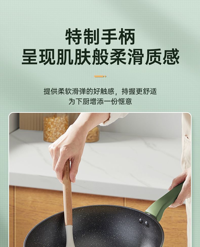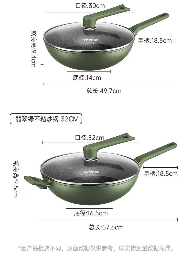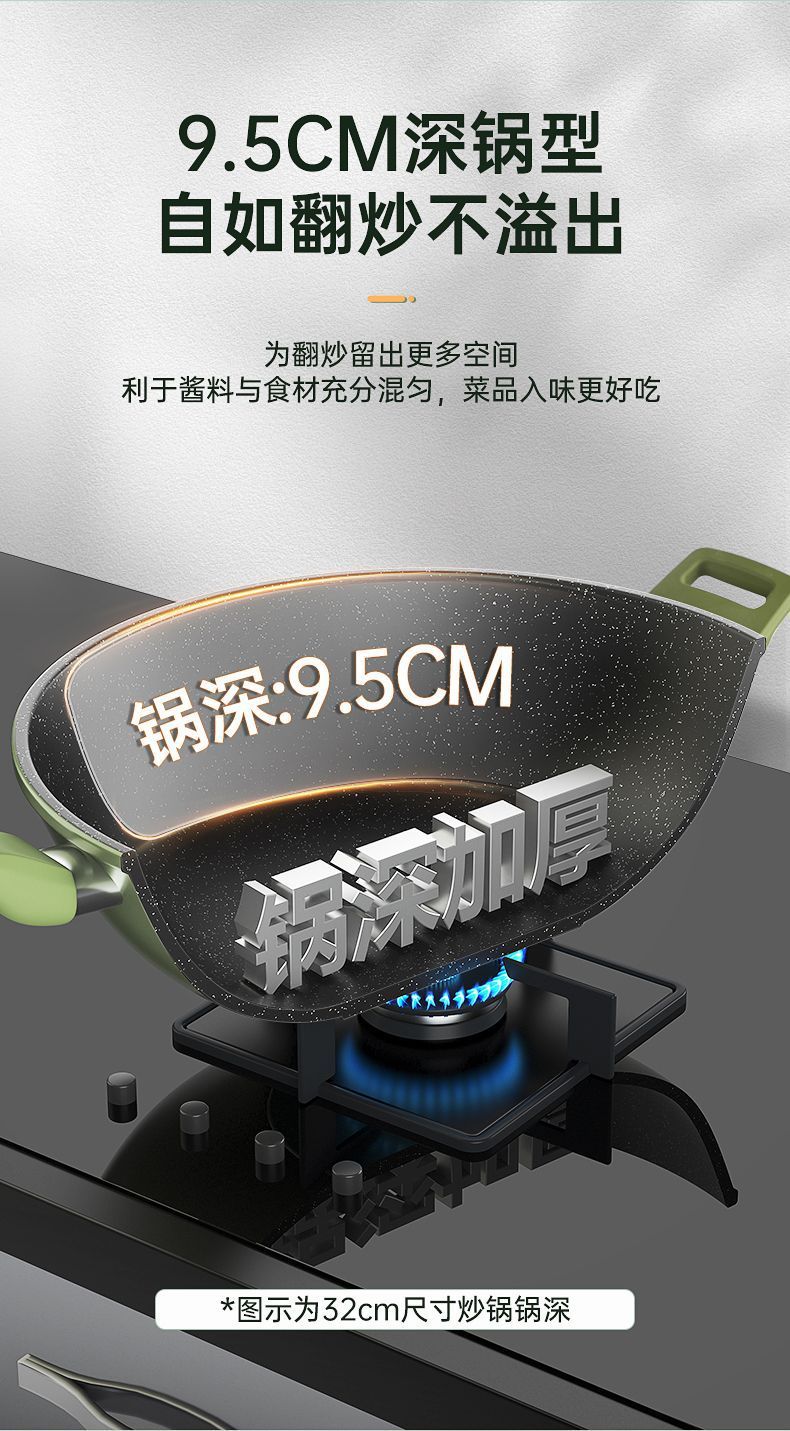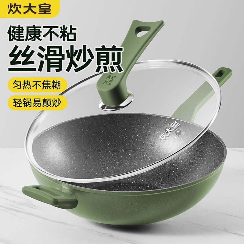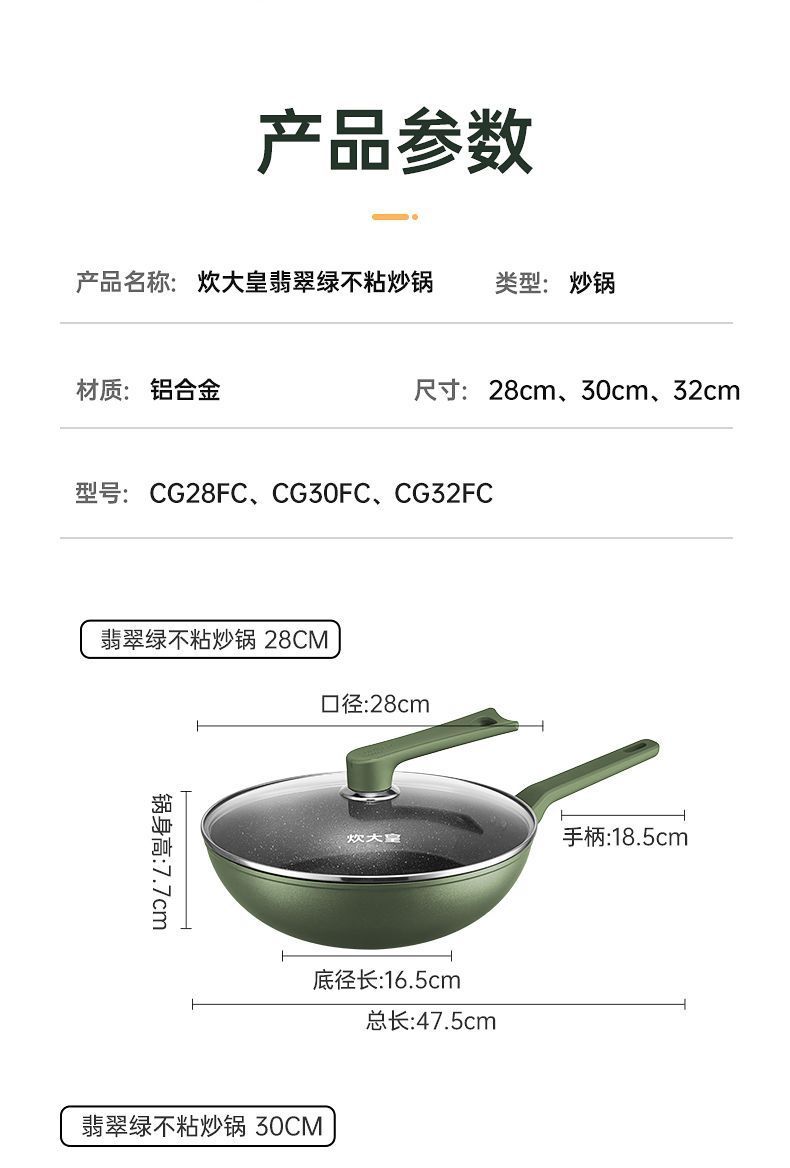 炊事大皇炒め鍋麦飯石色は鍋の家庭にくっつかない油を集めて油煙のないフライパンの翡翠緑の軽い炒め鍋です。