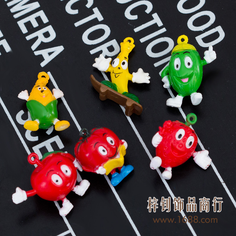6種類の果物の模型の子供の漫画のおもちゃの携帯電話のペンダントの子供のdiyの小さい景観の置物