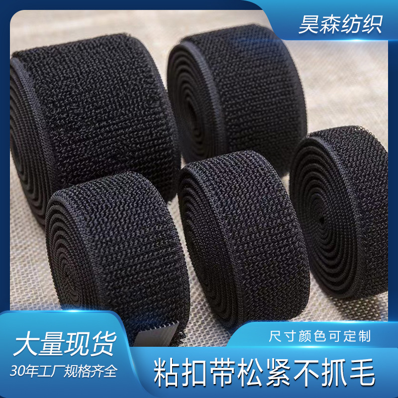 工場卸売りの弾力性のあるボタンはナイロンの弾力性のあるバンドの黒いナイロンのゴムをまねて、毛を引っ張らないマジックテープです。