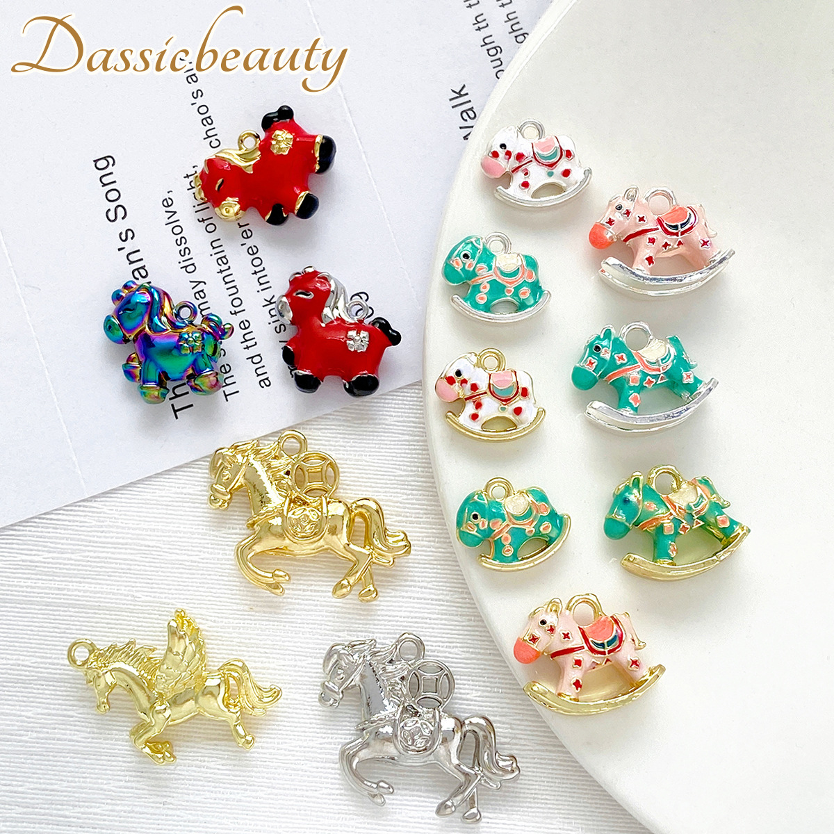 【马上有钱】金银小马吊坠合集手工diy串珠项链手链耳饰挂件配件