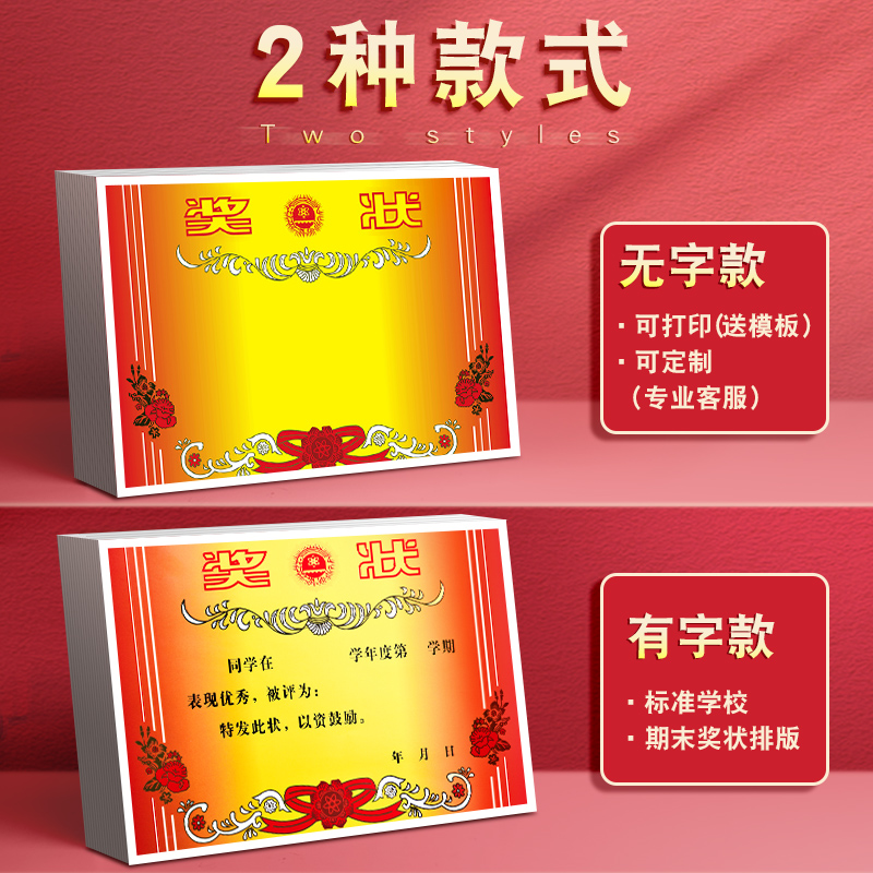 200张可打印空白奖状纸小学生幼儿园大中小学生颁奖学校专用奖状