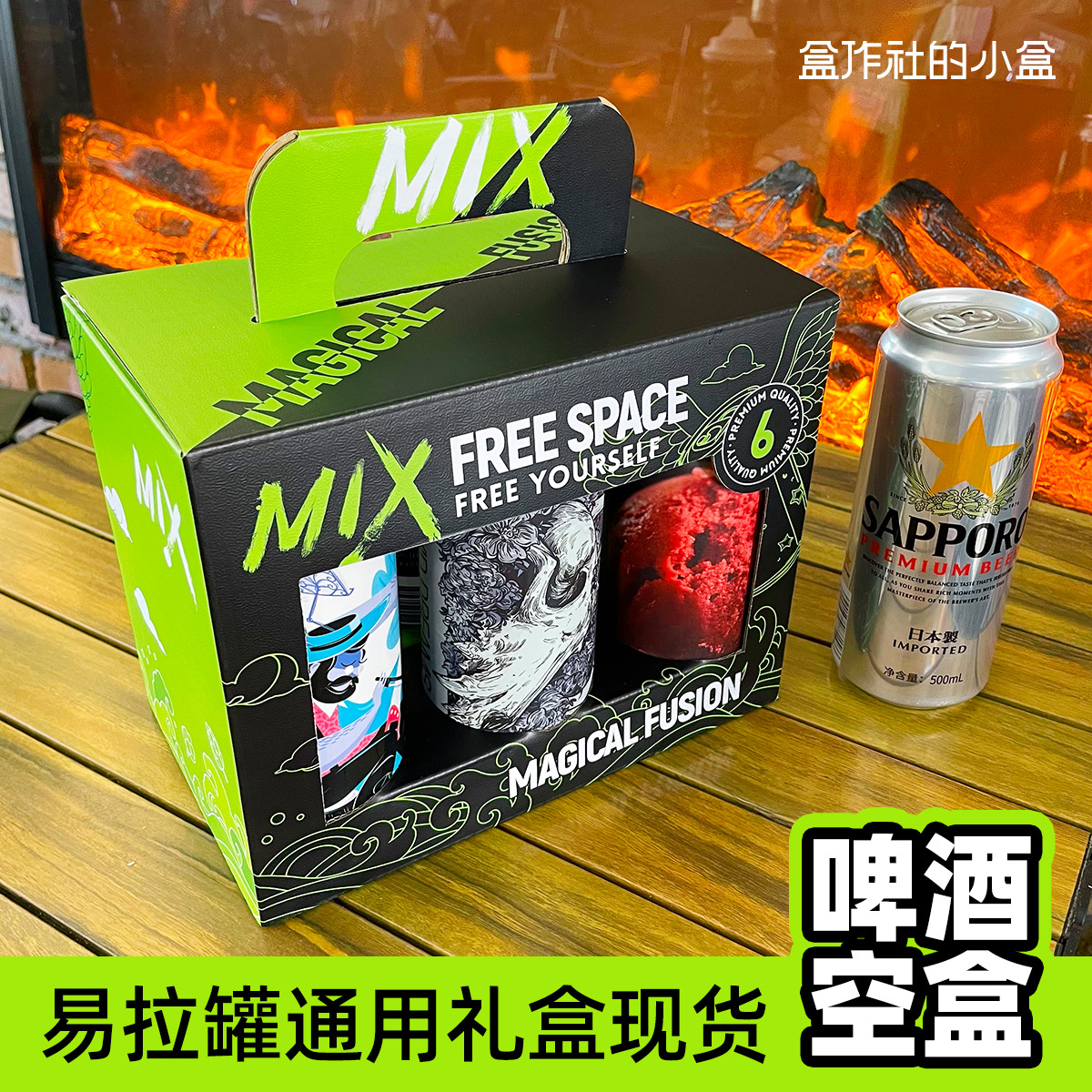 現貨ビール紙箱500ml6缶ハンドル付き箱473ml缶窓付きギフトボックス440ml缶包装箱