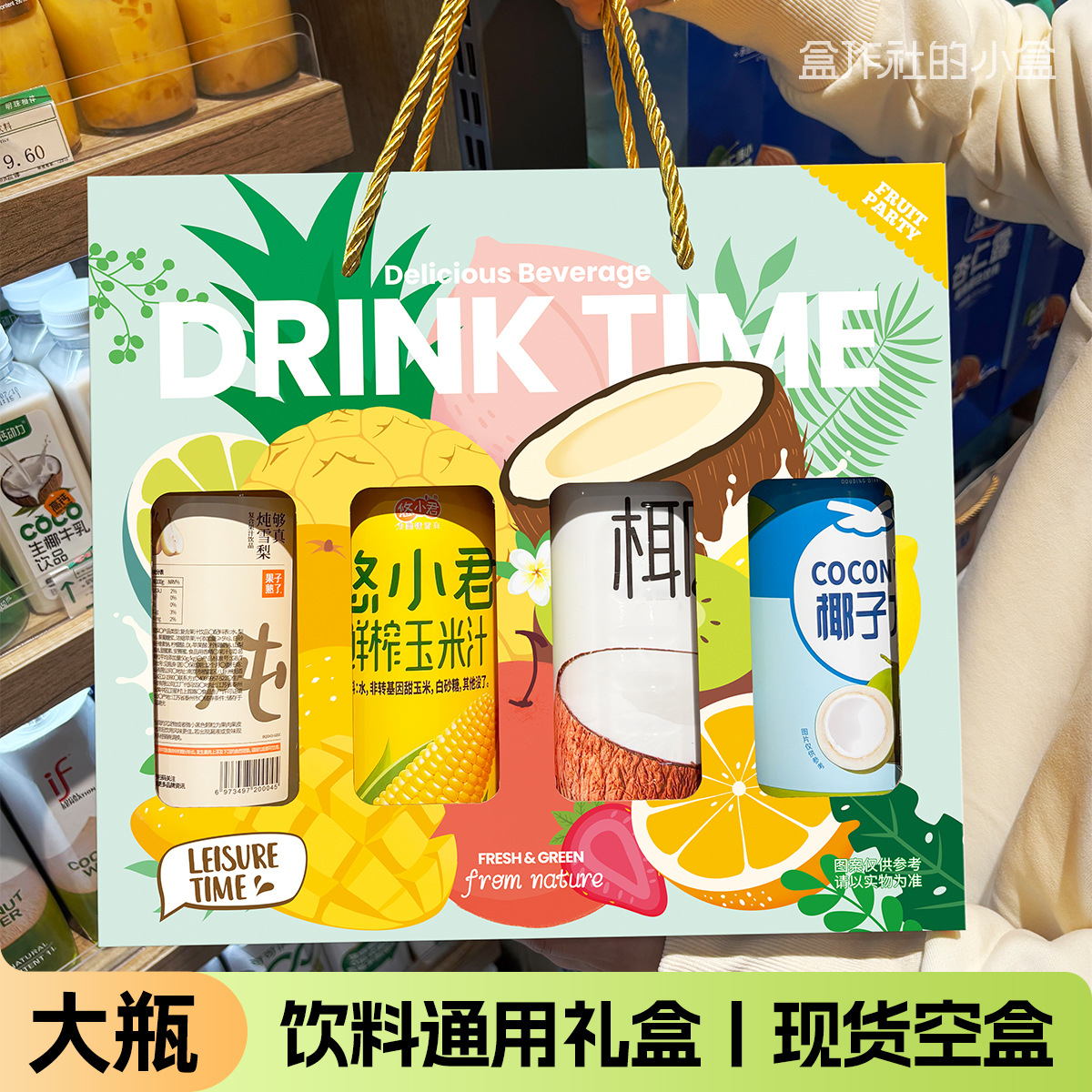 飲み物の包装箱の大きい瓶のジュースのココナッツの乳の手提げの箱の2025春節の祝日の贈り物の箱の飲み物の空の箱の通用する現物
