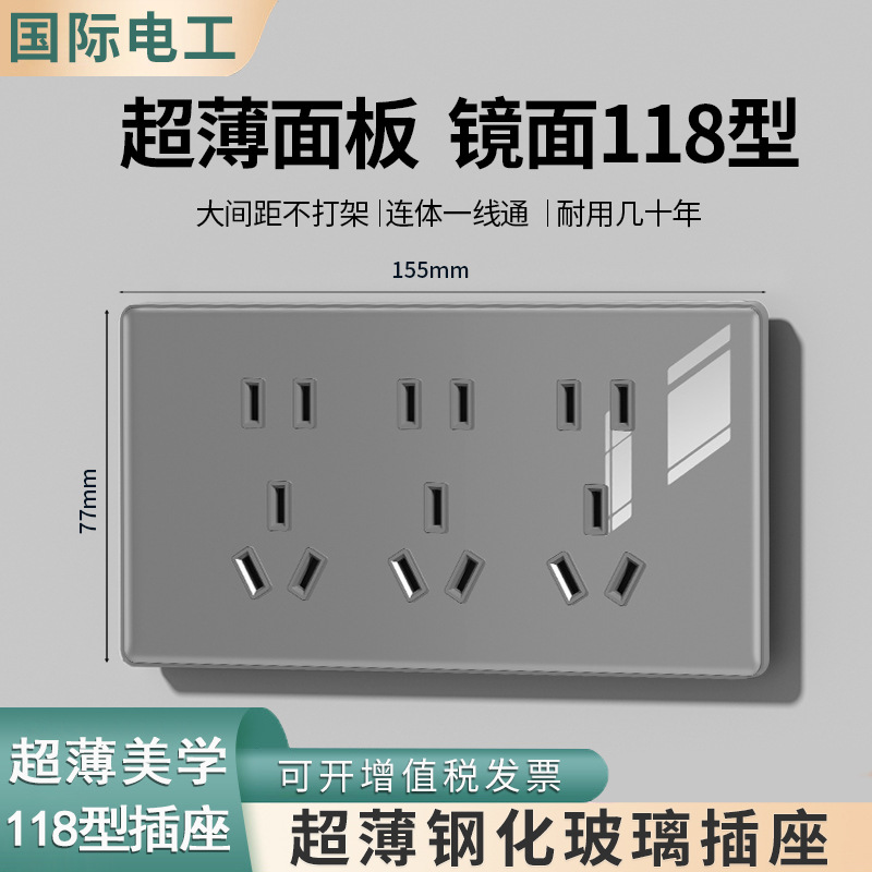 暗装118型超薄插座五孔墙壁玻璃面板六孔多孔插座10孔15孔20孔