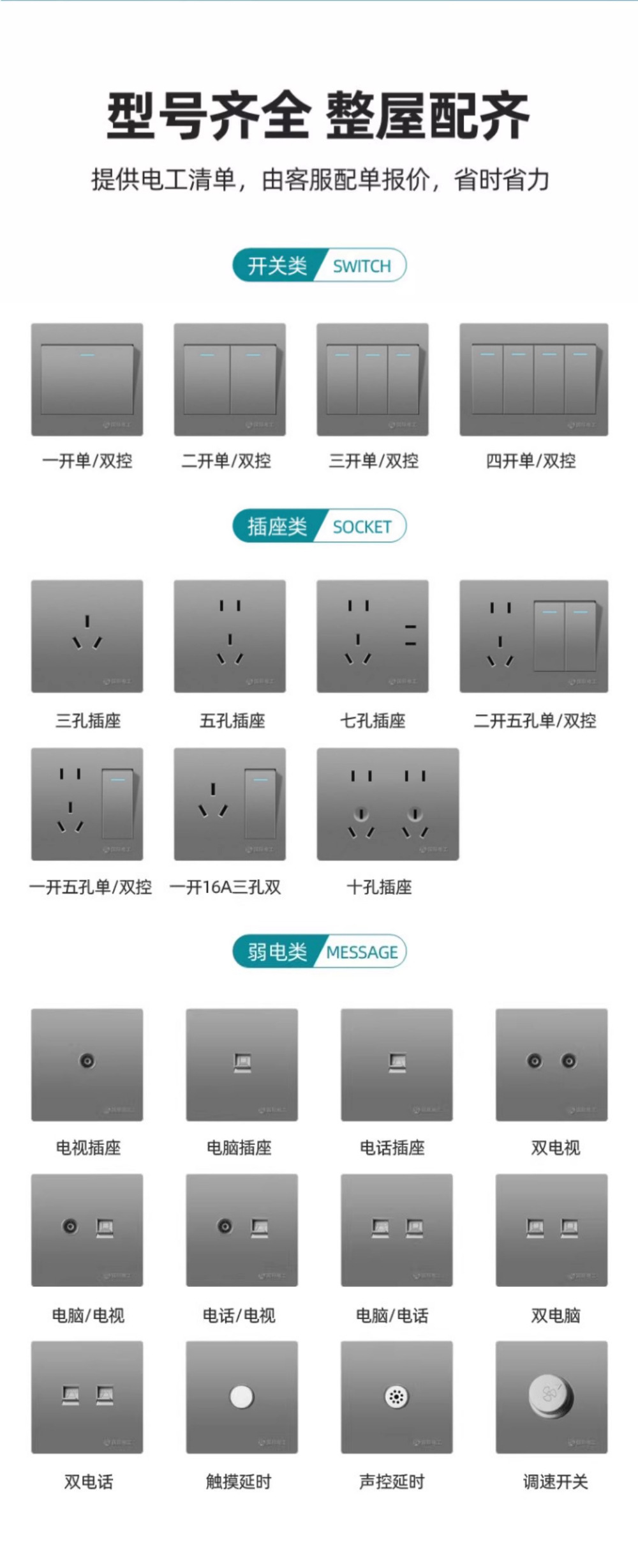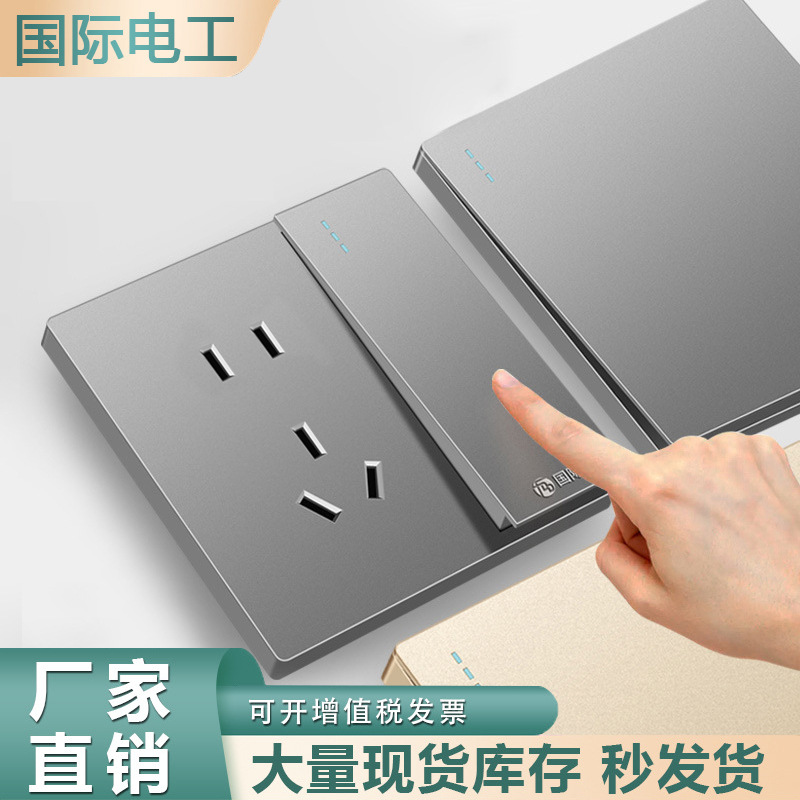 国際電気技師86型壁五穴10Aスイッチソケット暗装16aエアコンソケットスイッチパネル卸売り灰