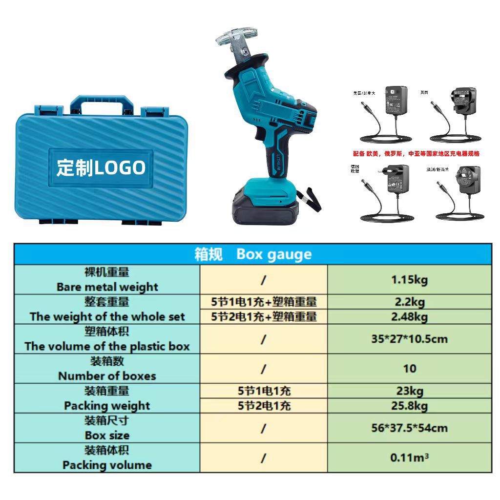 跨境外贸往复锯家用21v多功能无线电动马刀锯无线充电式锂电套装
