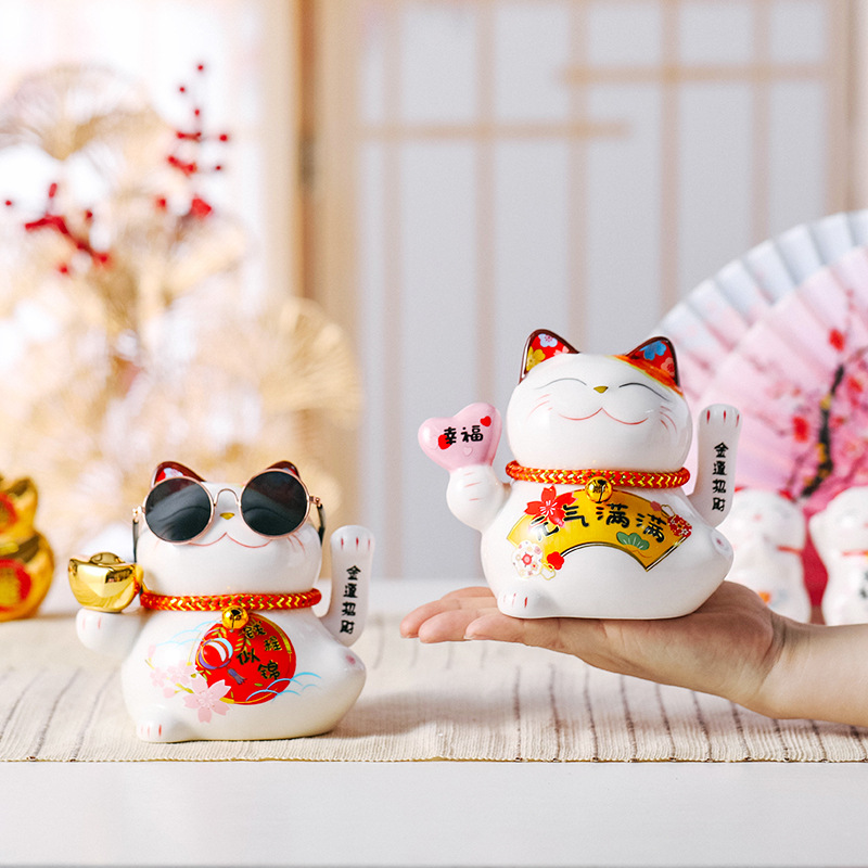 7インチ招き猫創意家庭置物陶磁器貯金箱新店舗開業プレゼント品印字客先