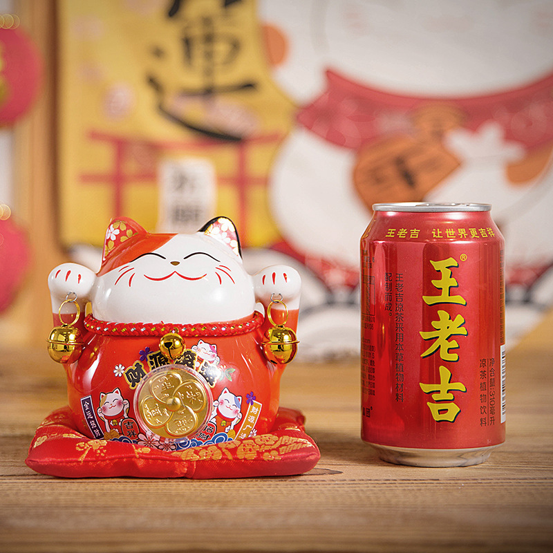 5寸の手を振って、招き猫の手を振って、お店にプレゼントをします。