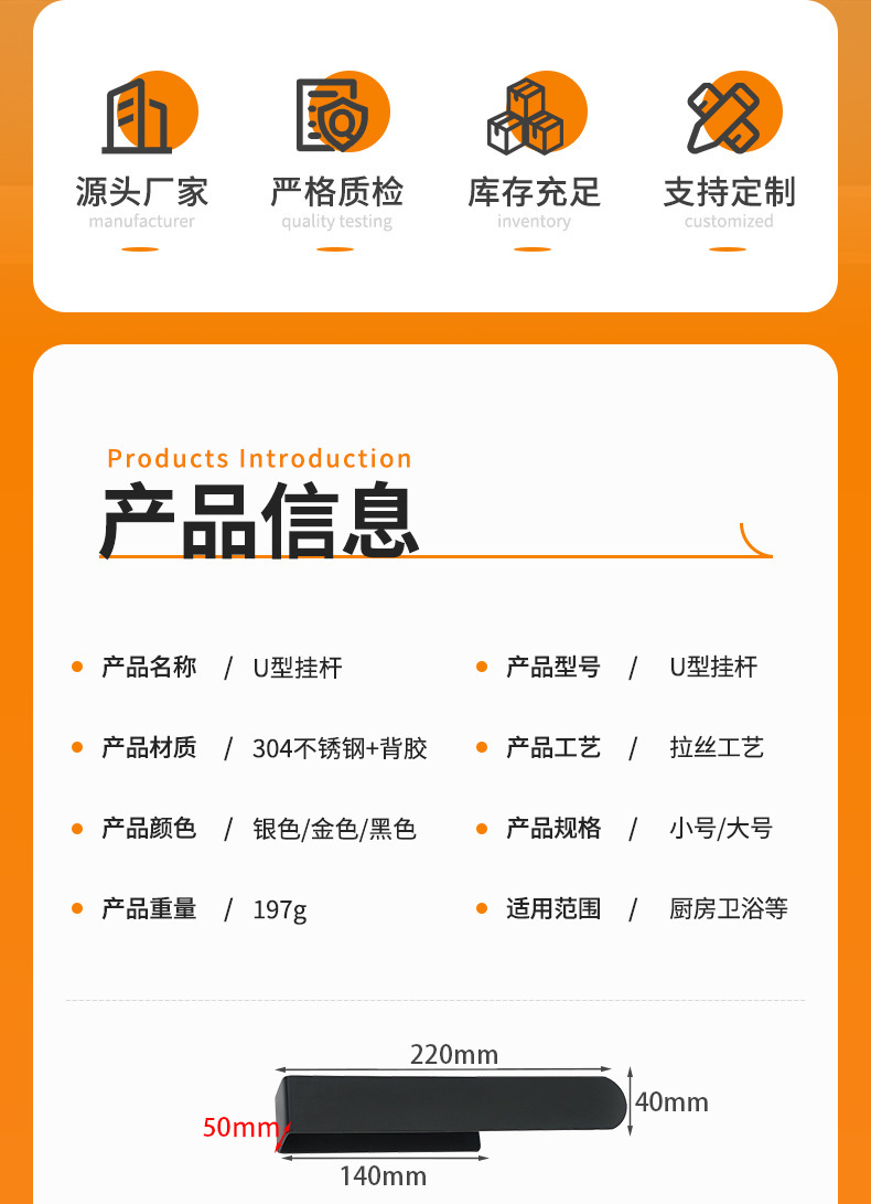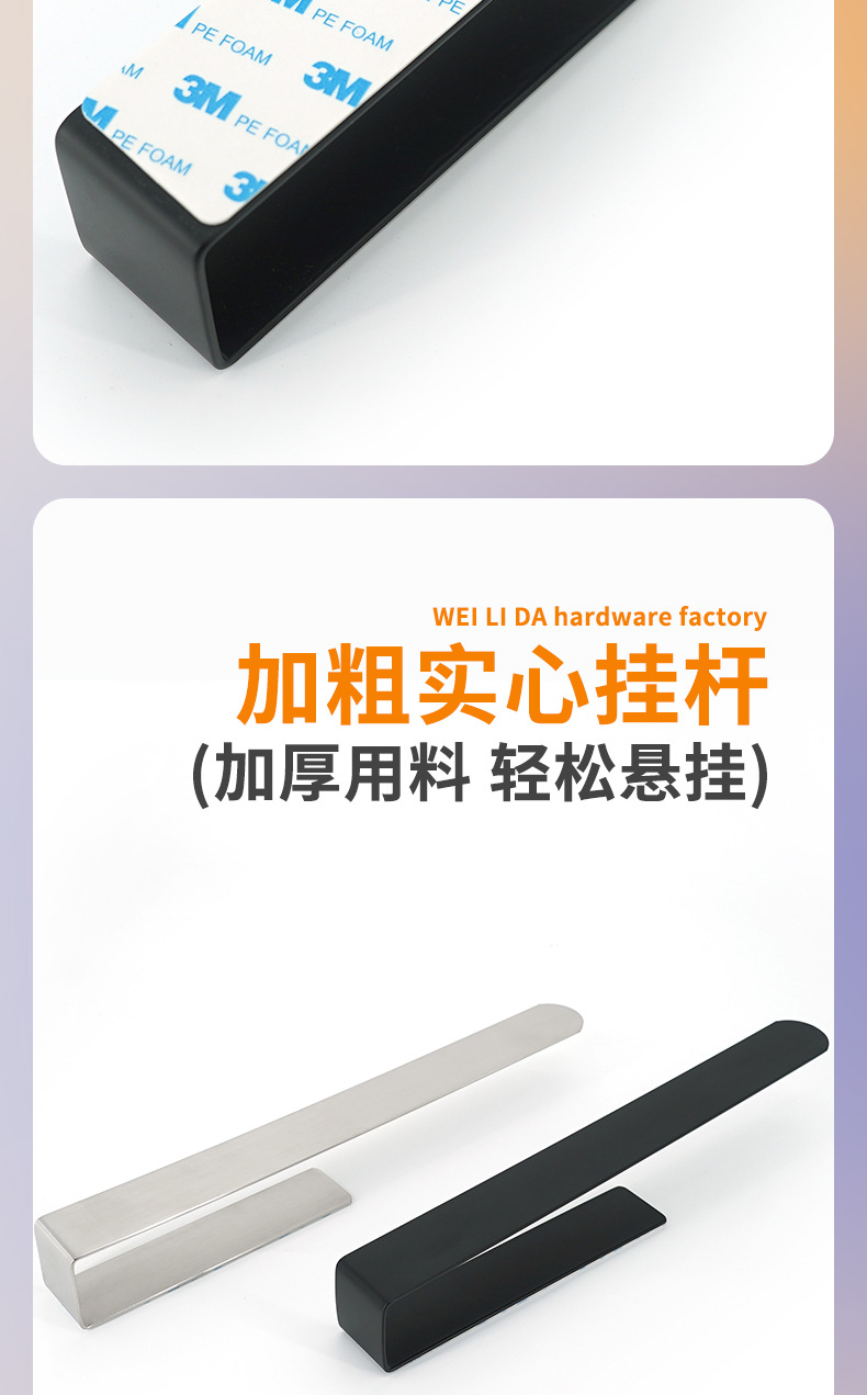 威力达五金制品厂主要生产:粘钩、衣钩、挂钩、衣帽钩、不锈钢排钩、厨房置物架、浴室毛巾架等五金产品,款式多样,支持多规格定制,OEM定制加工等
