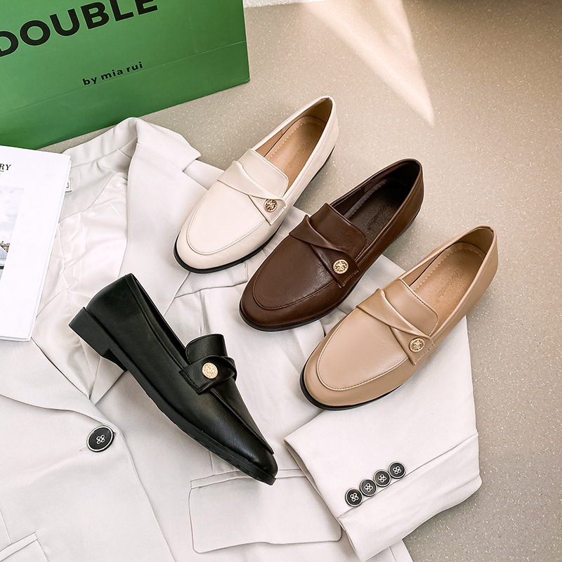 英伦复古风黑色小皮鞋秋季新款通勤工作单鞋平底一脚蹬百搭乐福鞋
