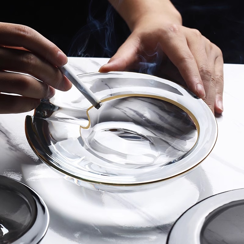ヨーロッパスタイルのゴールド塗装クリエイティブクリスタルガラス灰皿パーソナライズされたホームリビングルームホテルオフィス葉巻灰皿ギフト