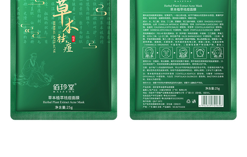 製品仕様 佰珍堂草本植去痘マスク (新)25g