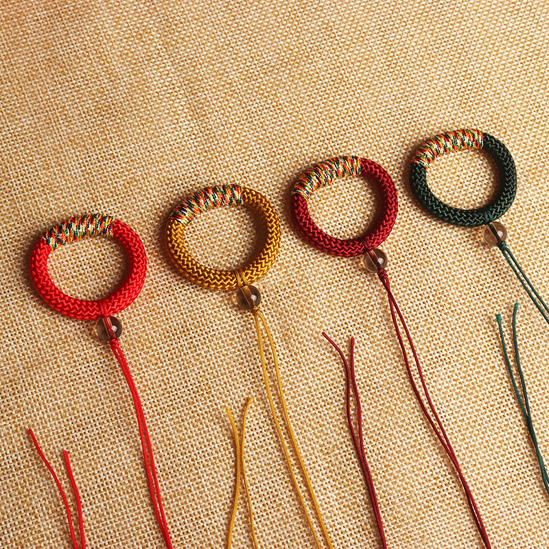 多機能の指のリングのひもの短いタイプのハンドルの件の文は手を捻ってヒョウタンの手作業でリングのキーホルダーの部品を編みます。