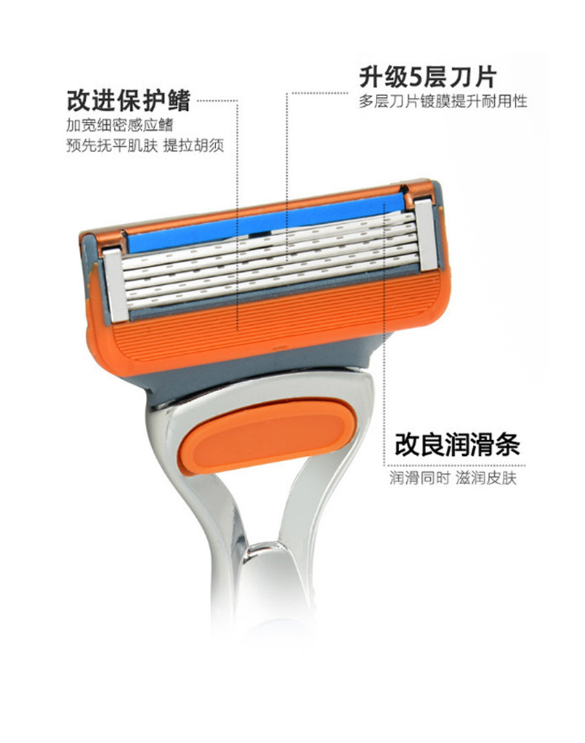 手动剃须刀五层精钢刀头超薄不锈钢刀片替换头刀架男士刮胡刀手动