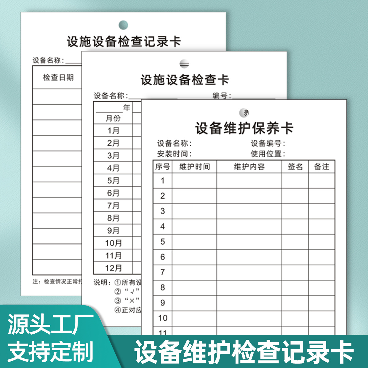 簡単な施設設備検査記録カードユニバーサル施設メンテナンスおよびメンテナンスカード検査登録カード両面印刷