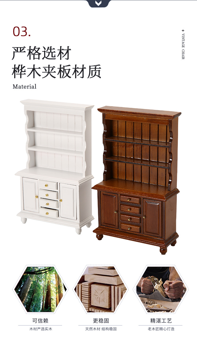 1:12dollhouse模型娃娃屋迷你家具微缩家具双门三层立柜展示柜