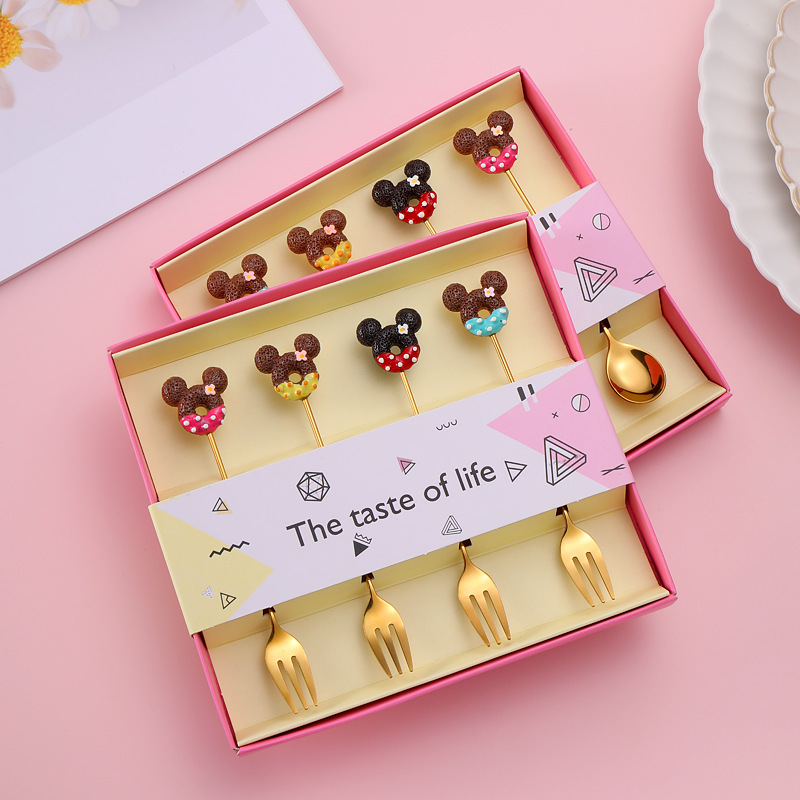 ミッキードーナツマカロンコーヒースプーンクリエイティブロリポップミキシングスプーンデザートスプーンフルーツフォークケーキフォーク