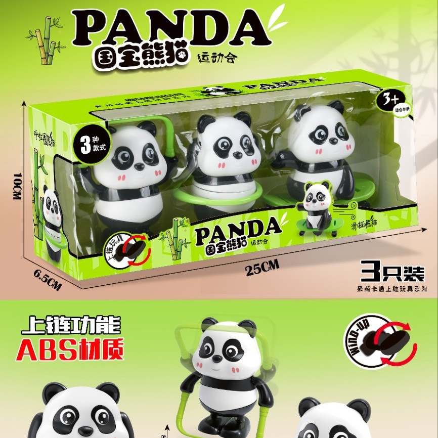 儿童上链运动国宝熊猫发条玩具呼啦圈滑板跳绳创意摆件批发