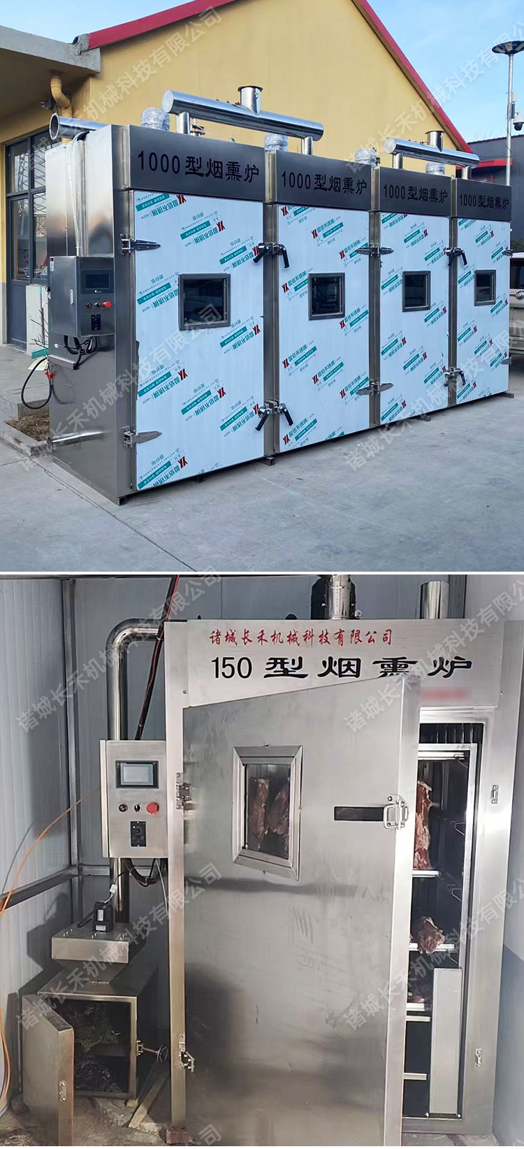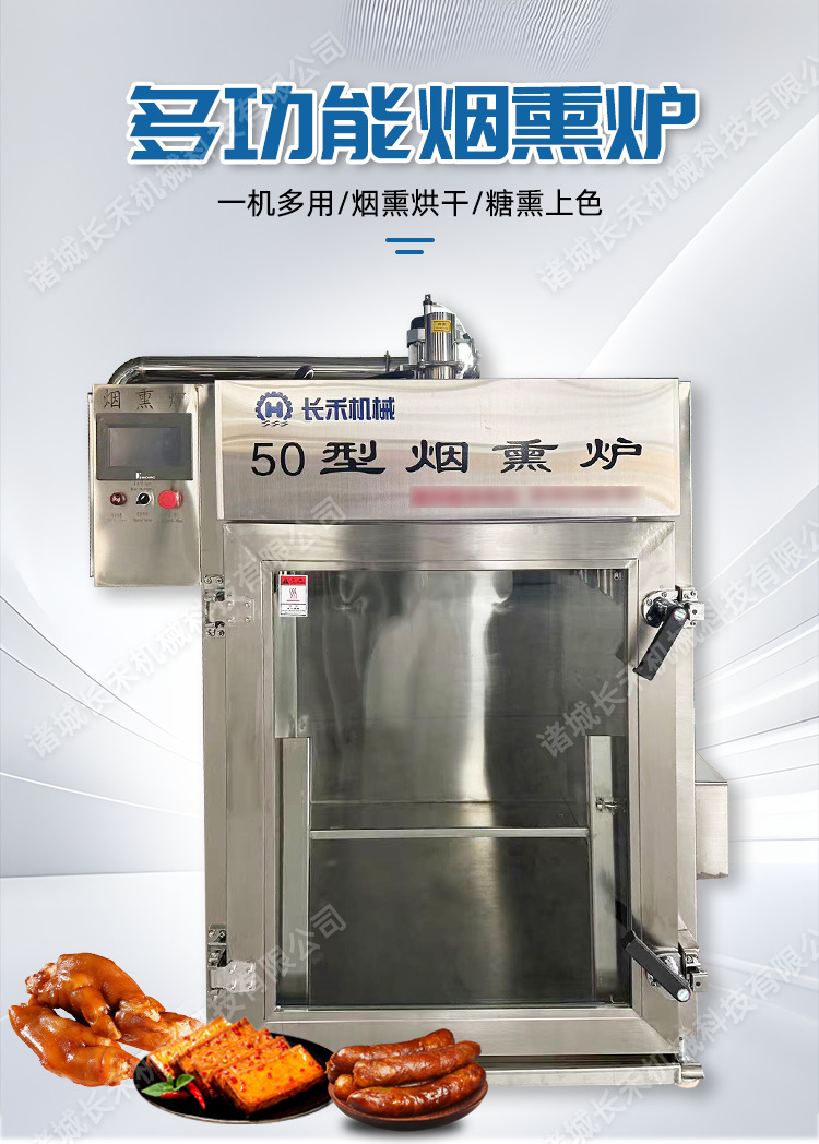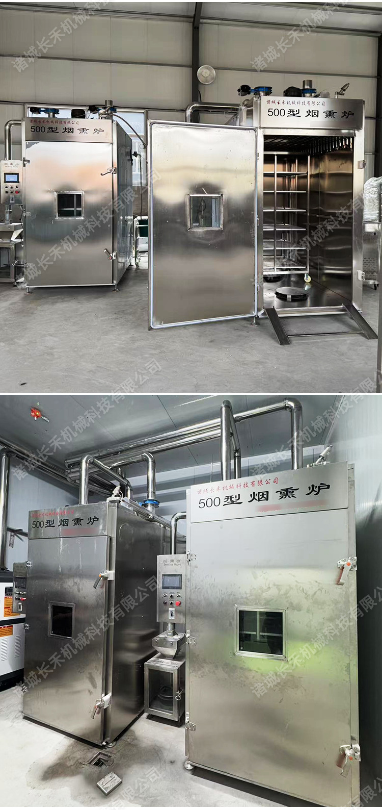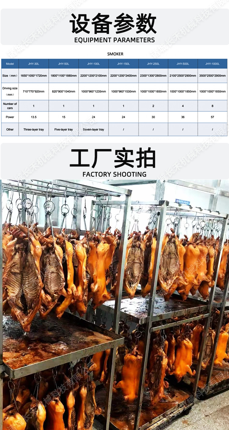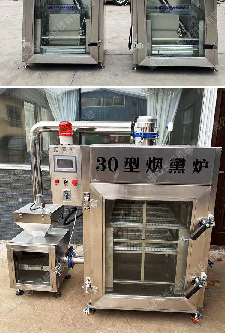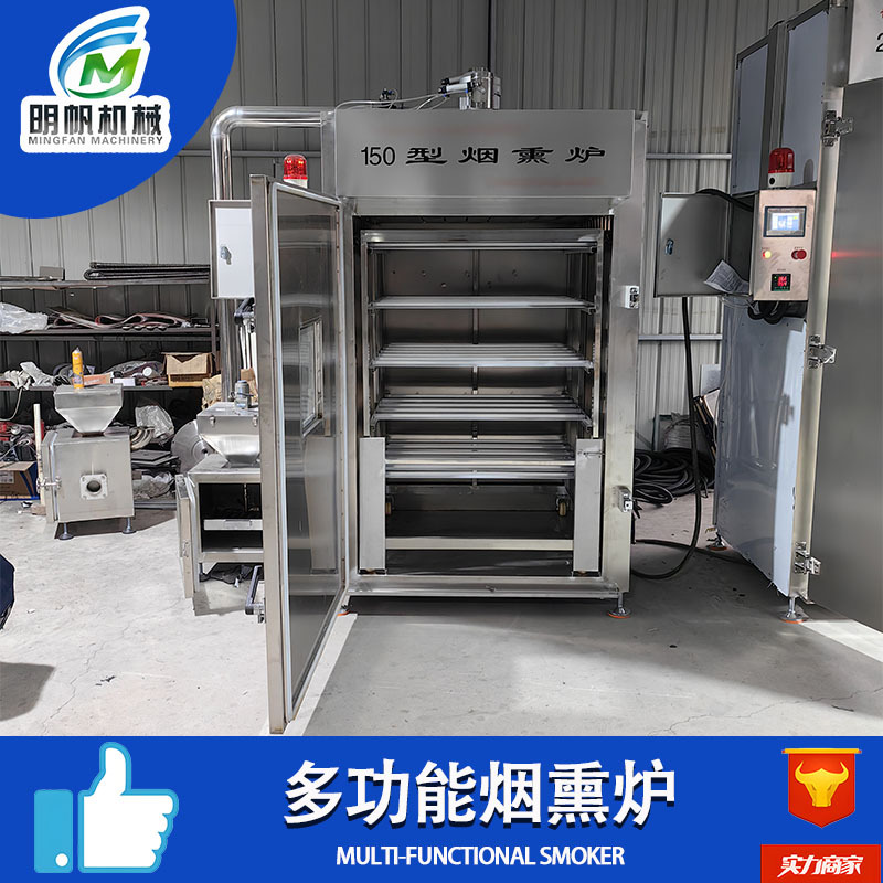 大型全自动烟熏炉 肉制品加工流水线多功能香肠烘烤炉具有能耗低、产量高、易清洗、绝热及密封性能好、升温快、烟熏香浓、自动控温定时控制等特点,本产品是肉类加工企业和个体加工肉类食品(火腿类、熏鸡、熏鸭、熏鹅、熏鱼等)的设备,具有蒸煮、烟熏、烘干功能,烟熏的食品味香色浓,各工艺功能采用自动控制,温度、烟量自动可调,是肉类食品加工提高产品质量的设备。