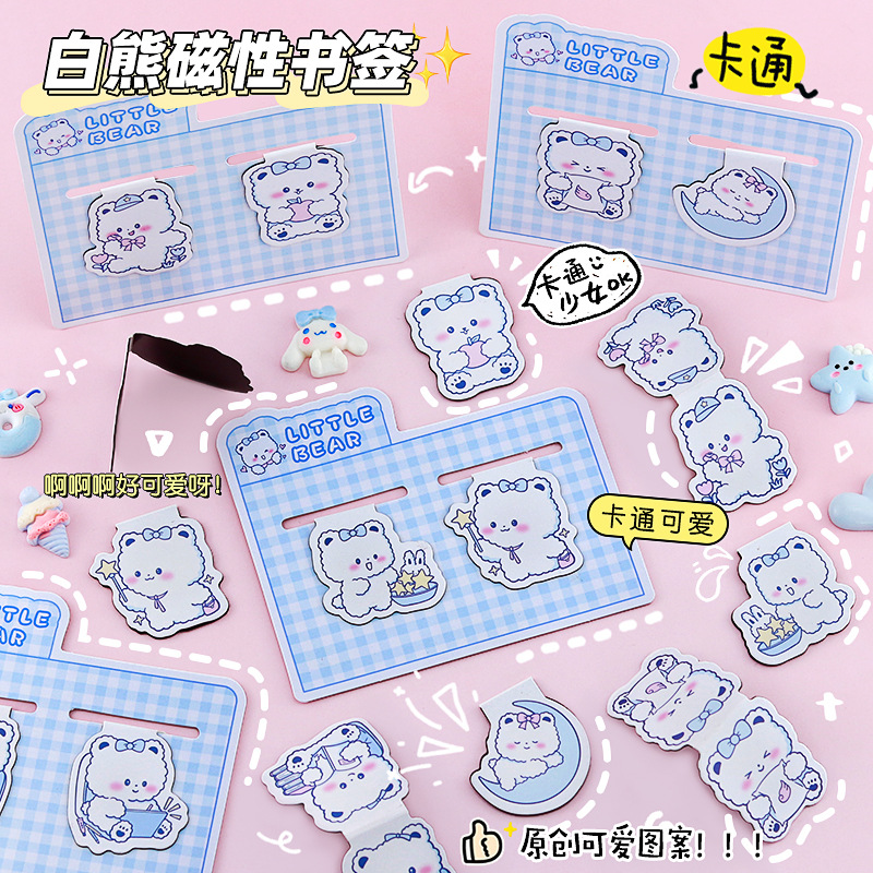 创意白熊磁性书签学生奖励小礼品实用文具奖品开学儿童活动礼物