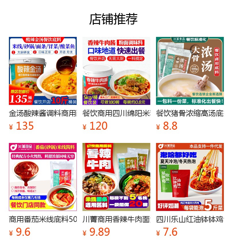 製品カテゴリ 増香ペースト、鍋物生地、鍋物調味料、焼き物、牛肉粉、羊精粉、ソーセージ調味料、スープ、魚精、その他