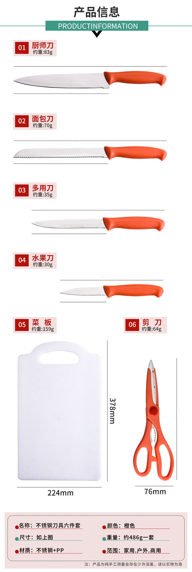 キッチンナイフセット6点セットステンレスフルーツナイフパンナイフまな板シェフナイフキッチンナイフセットナイフツール