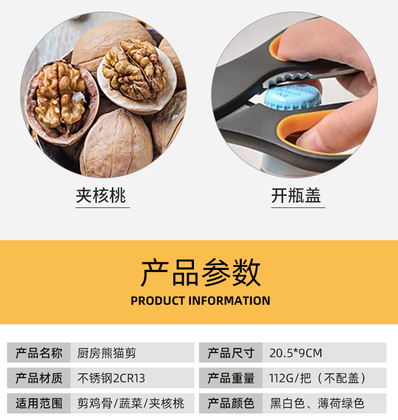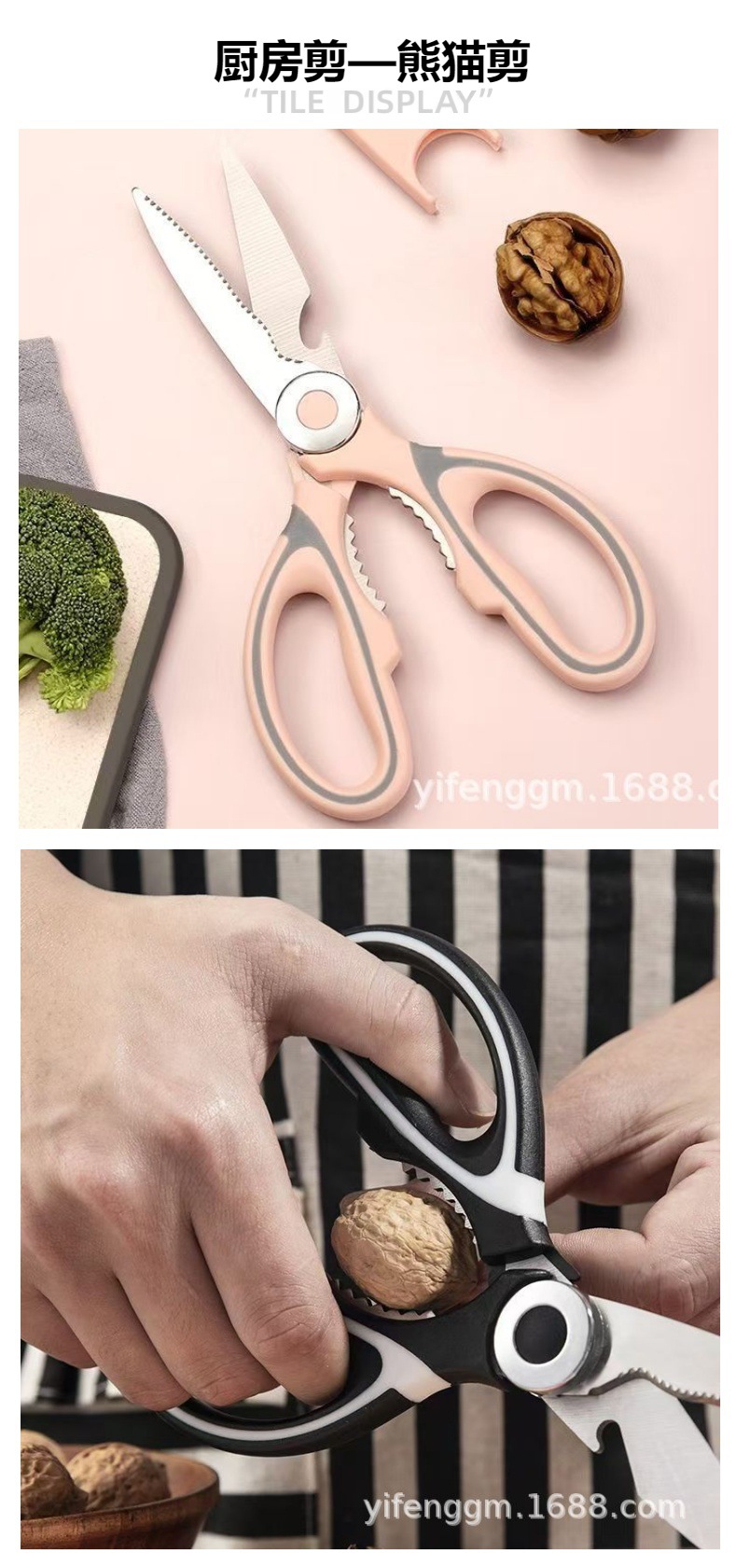 パンダ型キッチンハサミ、くるみ割り器付き、ステンレス製、カバー付き、刺し傷防止、鋭利な鶏骨切りハサミ、メーカー卸売、省力