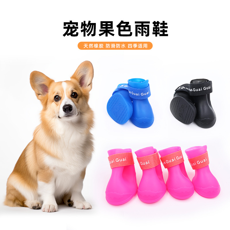 狗鞋宠物雨鞋小型犬脚套硅胶狗狗鞋子软底甩不掉防水小狗鞋不掉脚