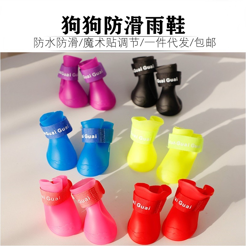 子犬犬靴テディ博美貴賓比熊軟底雨靴犬足カバー防水ペット靴セット4匹セット
