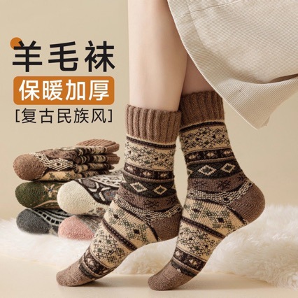 冬季复古秋冬袜子新款爆款女中筒袜加厚保暖民族风长筒袜毛圈袜