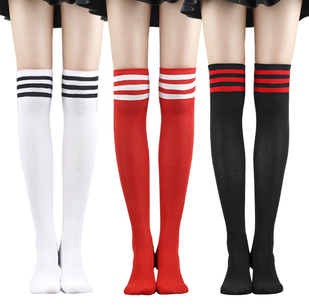 新しい三条の棒の中筒の女性の靴下のダンスの女性と膝の靴下のストライプは通気性のジャカードのメーカーの現物をつなぎ合わせて直接販売します。
