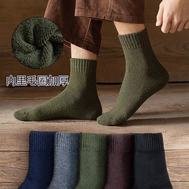 袜子男秋冬加厚加绒毛圈中筒拉毛冬天棉袜保暖防寒男中筒保暖袜子
