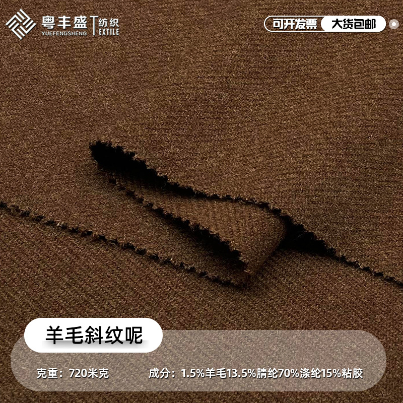 新しいウールの斜紋は冬のコート生地アクリル混紡コートです。