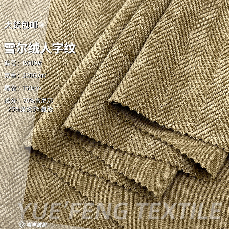 320g鱼骨纹雪尔绒 加厚单面绒肌理感人字纹棉服套装裤子外套面料